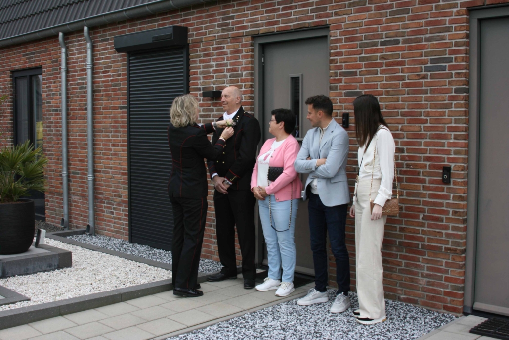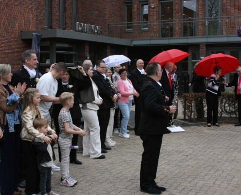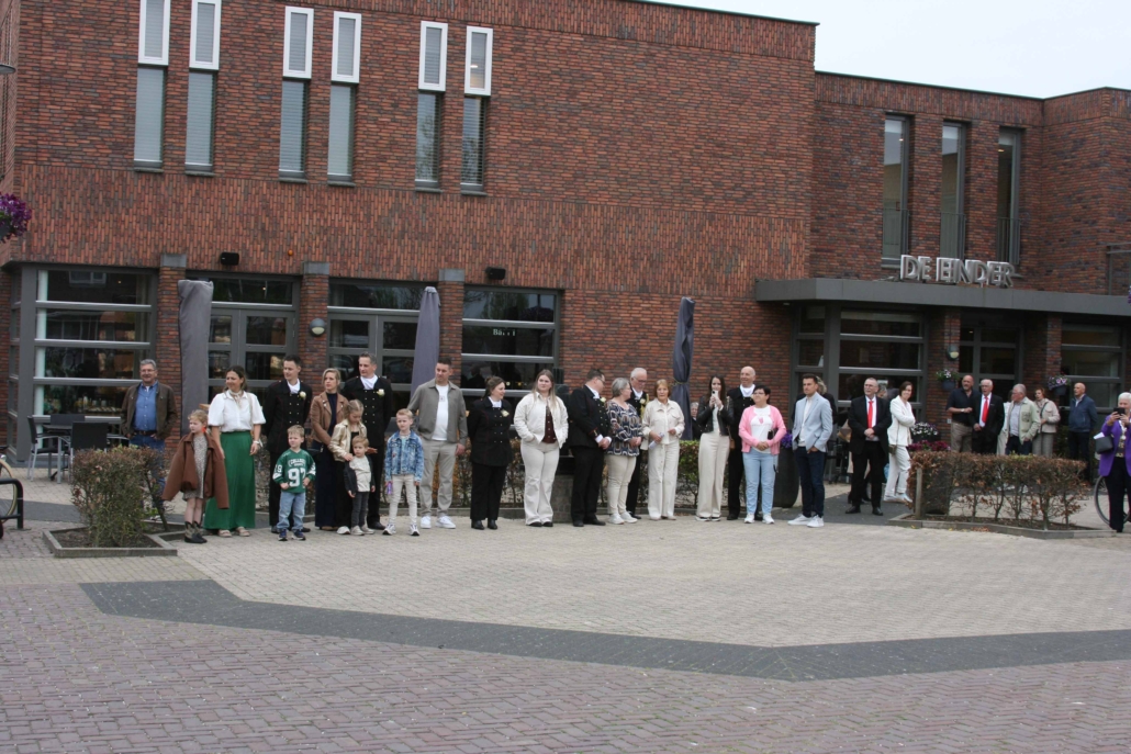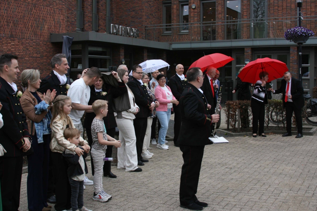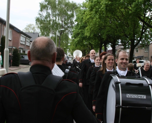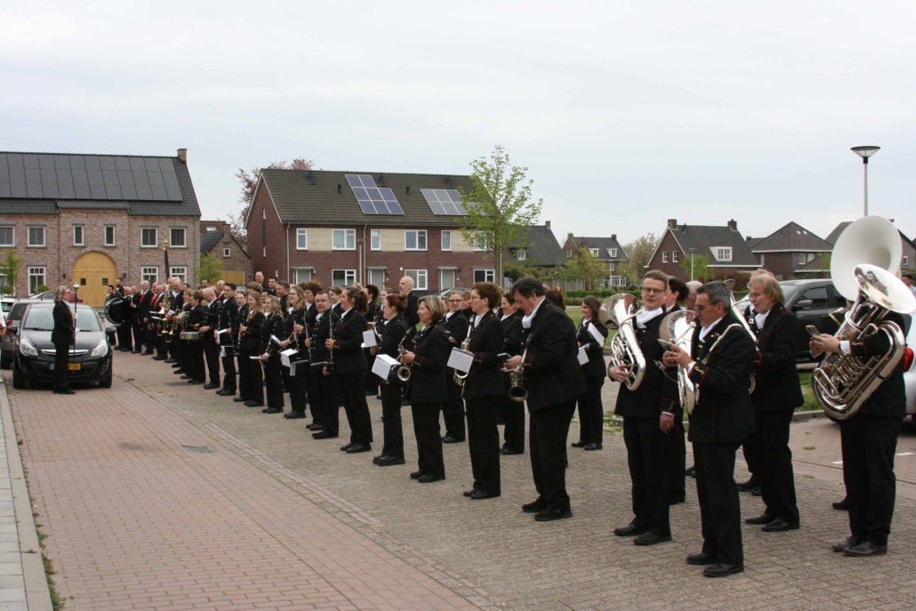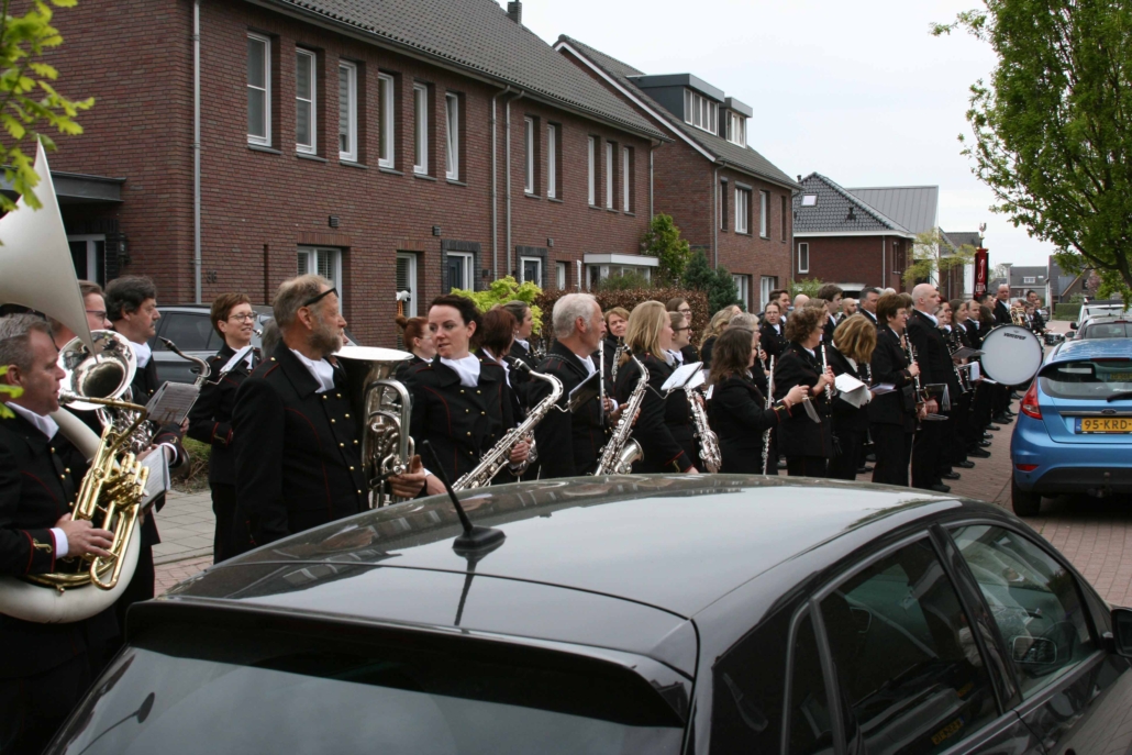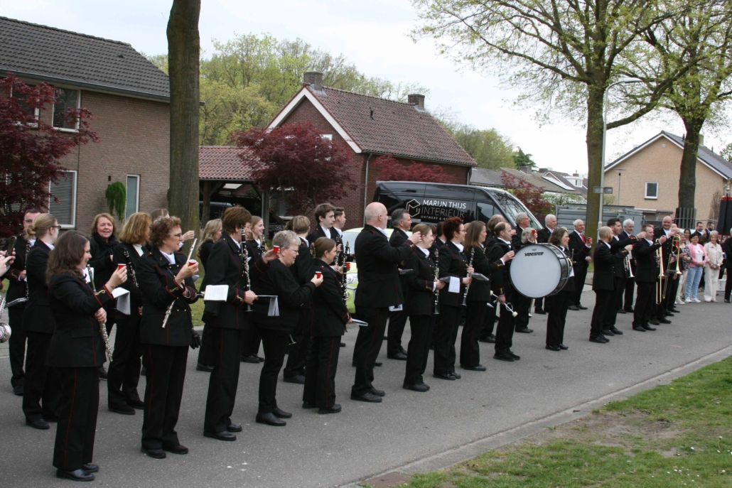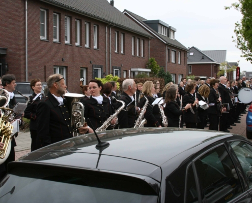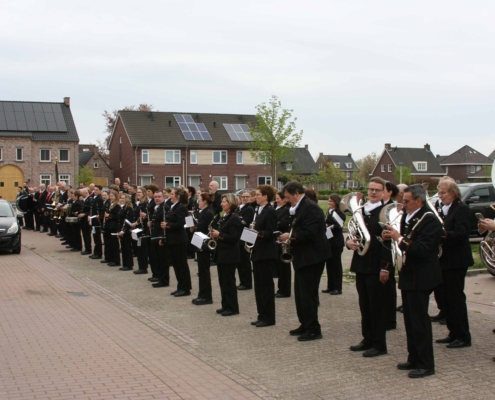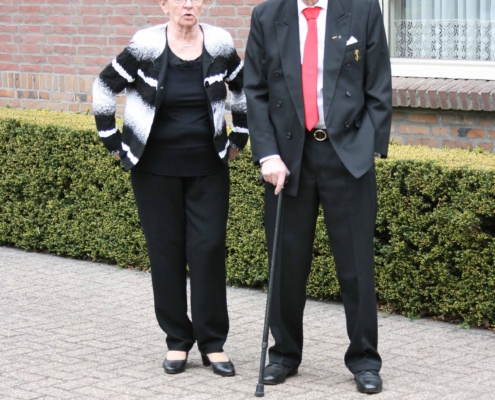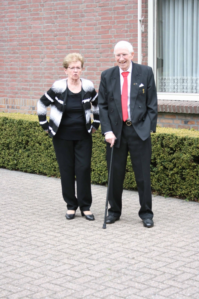 De jubilarissen werden door harmonie en slagwerkgroep thuis afgehaald met een serenade. Daarna vond de huldiging plaats in De Einder en werden de jubilarissen toegesproken door voorzitter Sjef Wijnen.