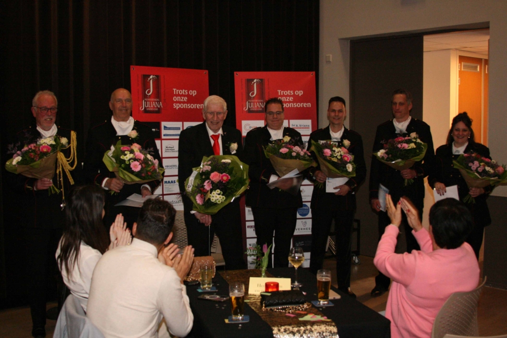Op zaterdag 18 april huldigde Muziekvereniging Juliana zeven jubilarissen.